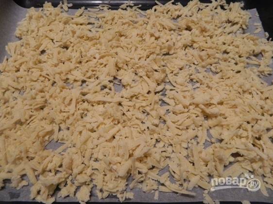 Подмороженное тесто трем на крупной терке сразу на противень, застеленный пергаментом. Отправляем тесто в разогретую до 180 градусов духовку и выпекаем до золотистого цвета.