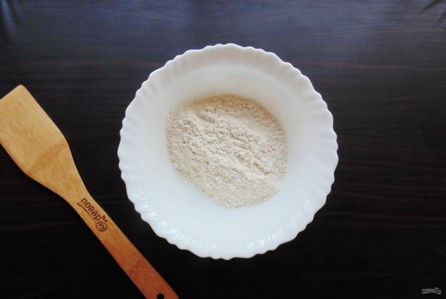 В миску насыпьте муку, соду, соль и разрыхлитель. Хорошо перемешайте сухие ингредиенты.