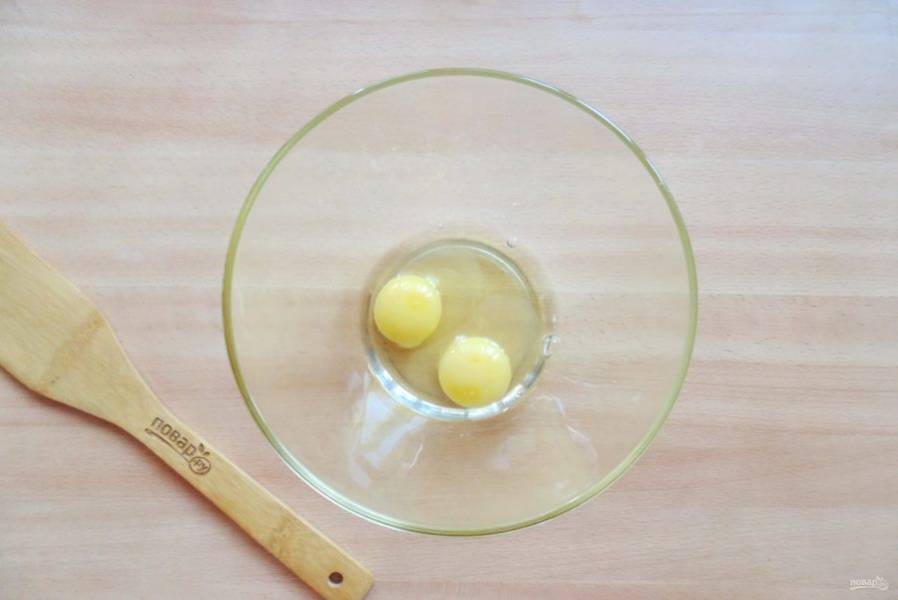 Добавьте сахар. Тщательно перемешайте яйца с сахаром.