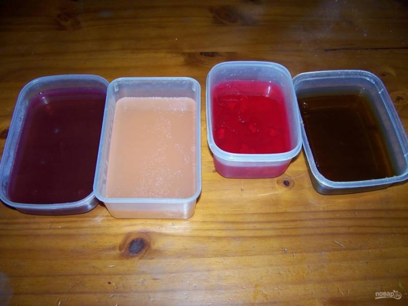 Желе залейте водой по инструкции на упаковке и отправьте застывать в холодильник.