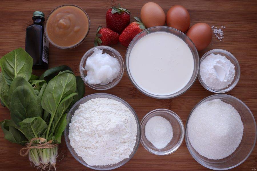Подготовьте все ингредиенты по списку. Шпинат тщательно вымойте и оставьте только листья.