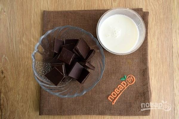 Для глазури понадобятся: шоколад и сливки. Глазури получается много, хватает на сплошное покрытие торта. Я использовала половину порции, чтобы слегка украсить торт.