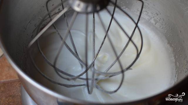 6. Аккуратно отделите белки от желтков, отправьте белки в глубокую мисочку со щепоткой соли.