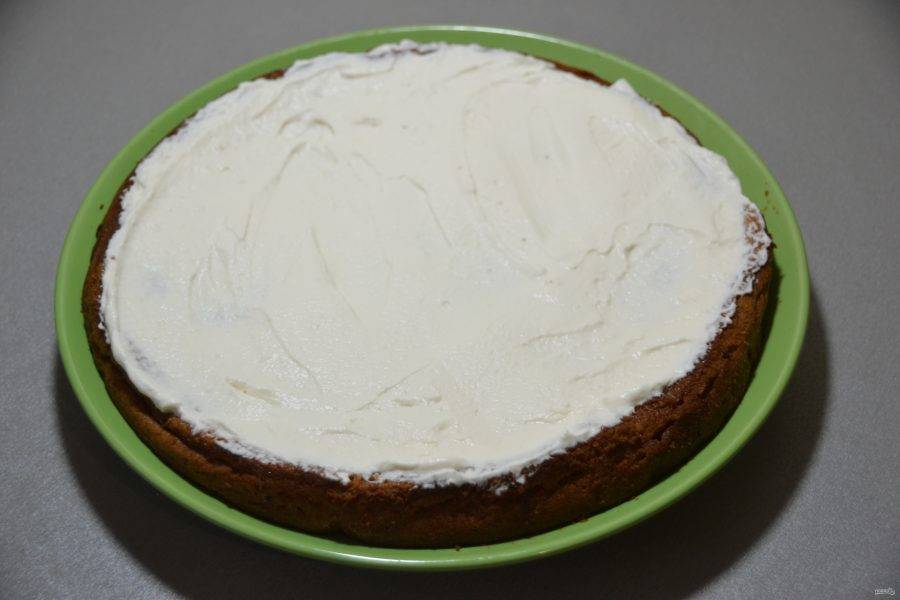 После того, как корж окончательно остыл, выровняйте верх кремом.