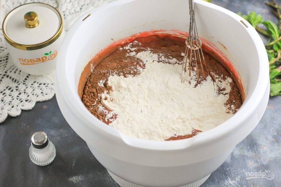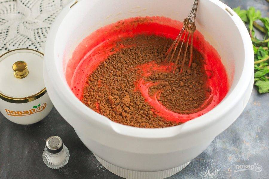 1. Свекольное пюре или сок являются натуральным красителем, если хотите красноватый оттенок в коржах без лишней химии.2. Просейте муку, какао и разрыхлитель, чтобы избежать комков в тесте.