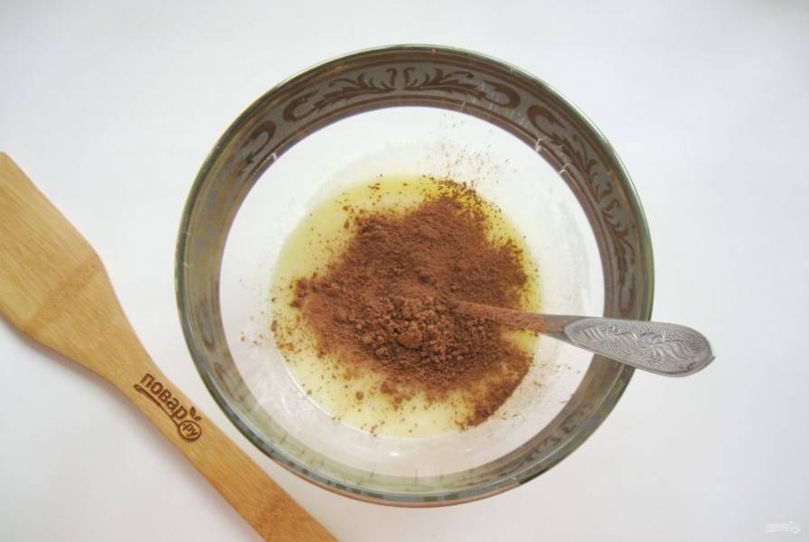 Всыпьте какао-порошок.
