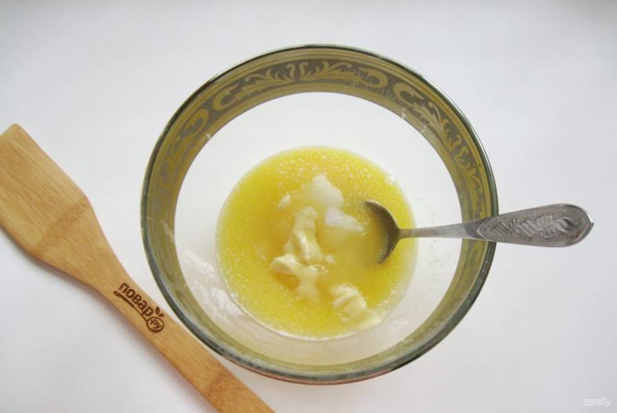 Растопите сливочное масло и также добавьте в миску.
