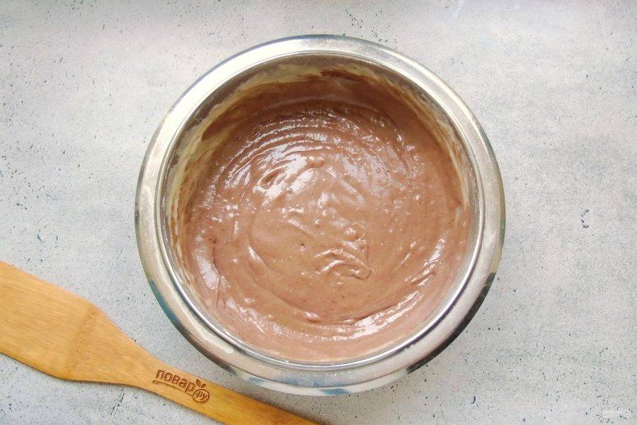 В оставшееся тесто добавьте какао-порошок и перемешайте.