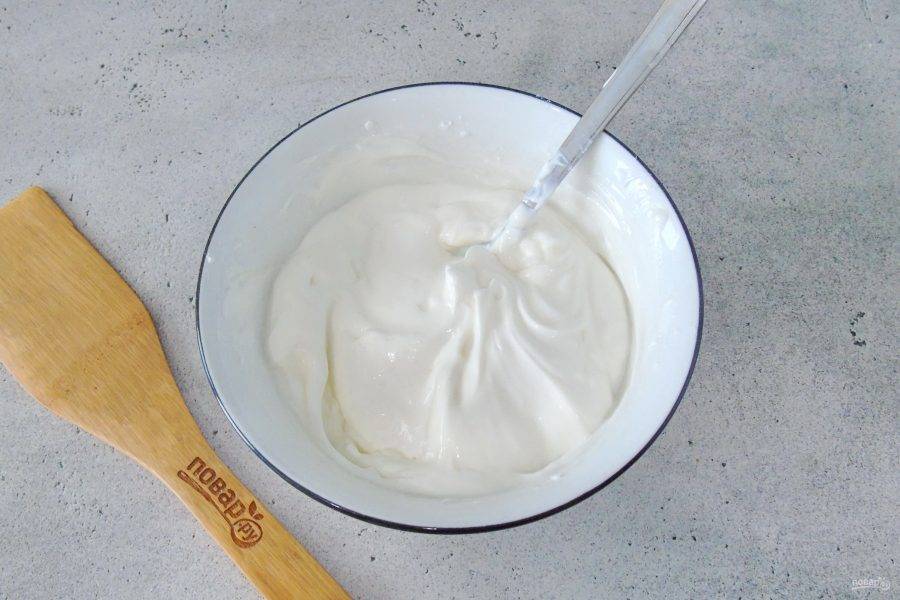 Сметану перемешайте с сахарной пудрой, которую кладите по вкусу.