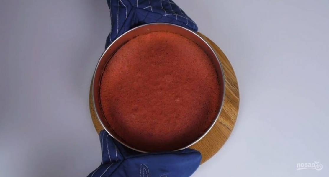 3. Соедините с мучной смесью и перемешайте лопаткой. Распределите тесто по форме и отправьте в разогретую до 160 градусов духовку на 30 минут. Оставьте корж в форме на 15 минут, после чего полностью остудите на решетке.