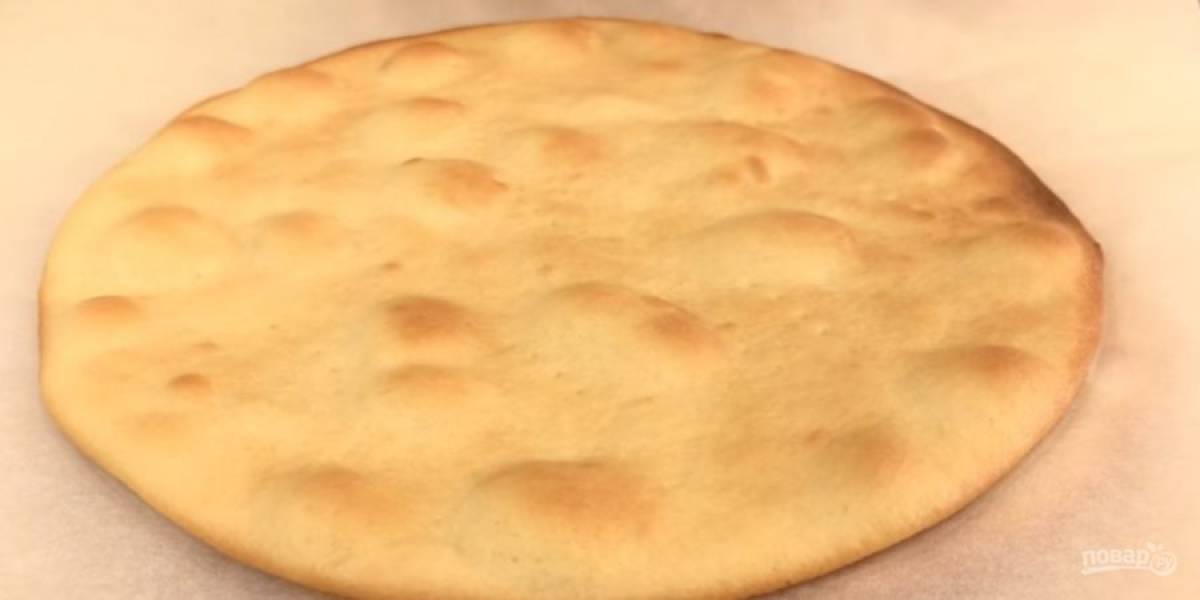6. Переложите пергамент с коржом на противень и наколите тесто вилкой. Выпекайте коржи в разогретой до 200 градусов духовке в течение 3-4 минут. Коржи отделите от пергамента и остудите.