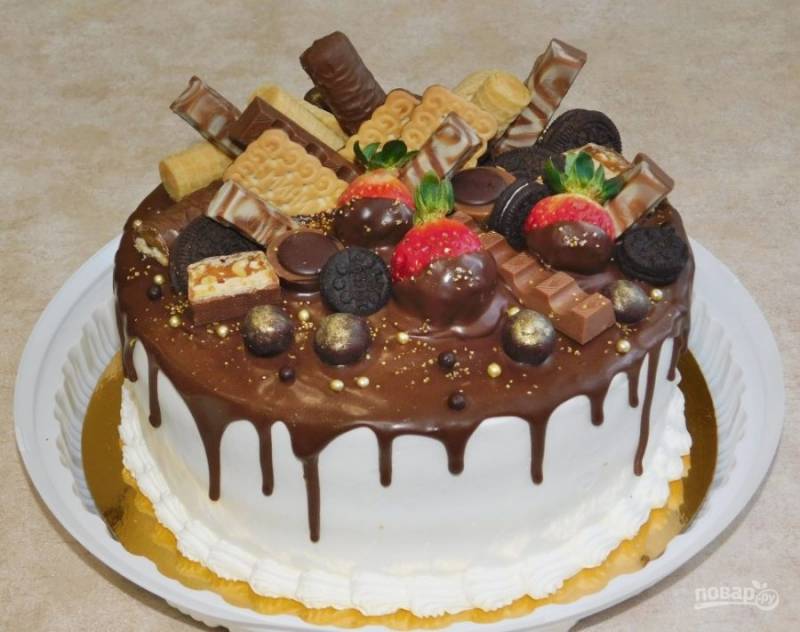 Залейте торт шоколадом и украсьте по своему вкусу. Приятного чаепития!