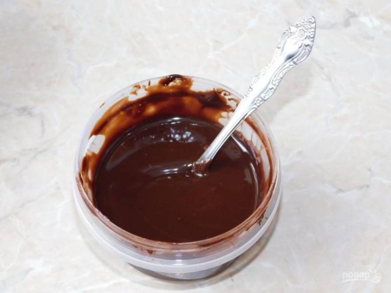 Для заливки торта растопите шоколад со сливками. Остудите.