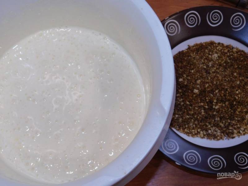 Вмешайте молотые и обжаренные орехи.