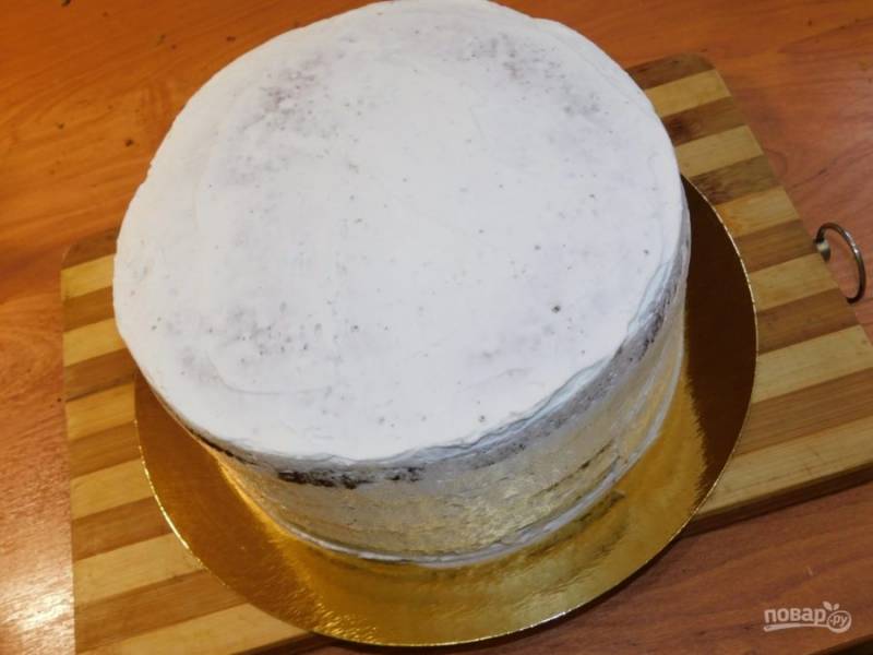Соберите весь торт полностью. Поставьте в холодильник и дайте ему застыть в течение нескольких часов.