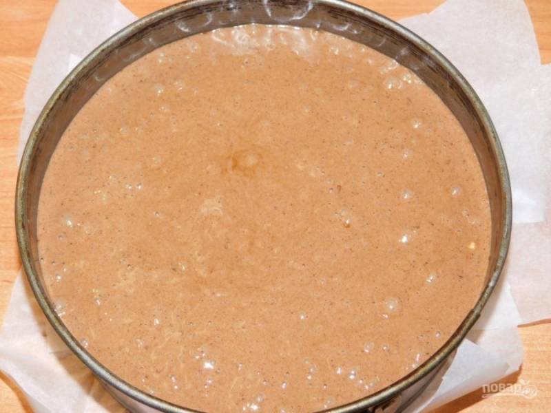 Добавьте какао и вылейте тесто в форму для выпечки. Диаметр - 20-22 см. Поставьте в духовку, разогретую до 180 градусов, на 40-50 минут.