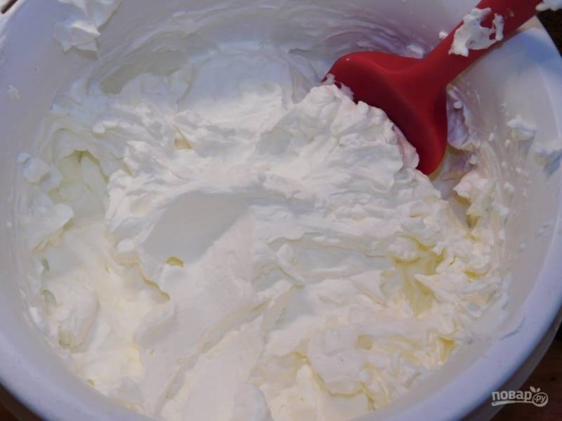 Для крема взбейте жирные сливки с сахарной пудрой.