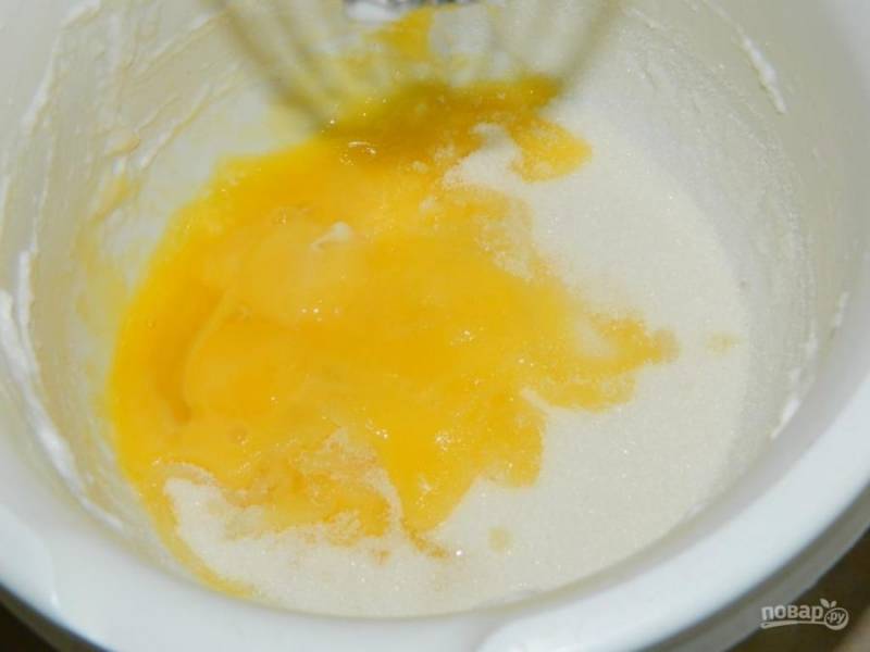 Для приготовления бисквита взбейте яйца с сахаром.