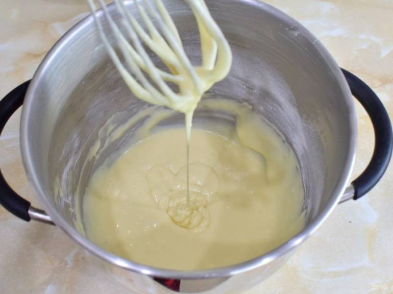 Готовое тесто получается уже не жидкое, но и не очень густое.