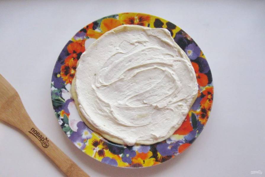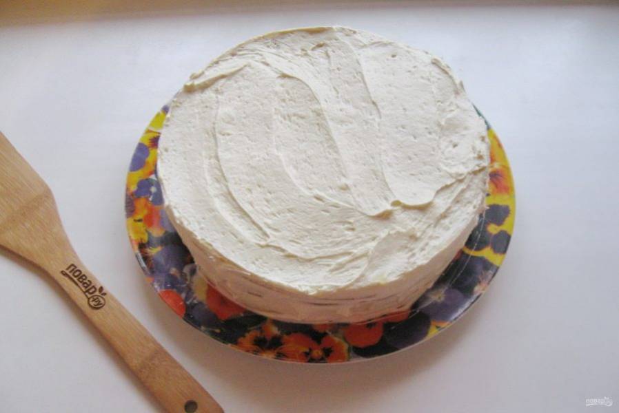 Так поступите со всеми коржами. Смажьте торт кремом с боков.