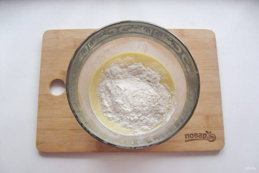 Растопите 50 грамм сливочного масла и добавьте в тесто. А также соду, погашенную уксусом или лимонным соком.
