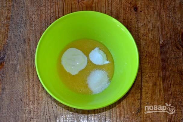 Яйцо соедините с сахаром и взбейте до однородности венчиком или вилкой.