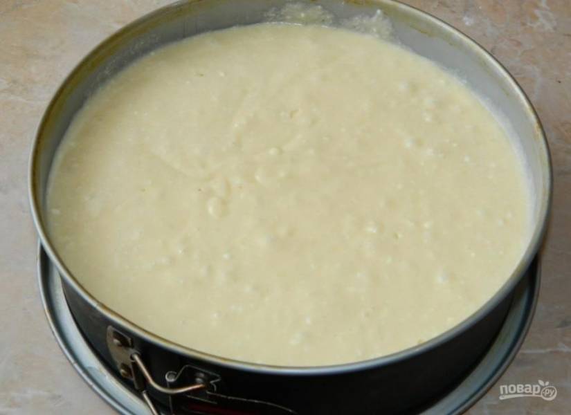 Готовое тесто вылейте в форму для выпечки. Поставьте в духовку, разогретую до 180 градусов, на 45-60 минут.