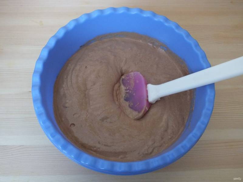 Достаньте белки и порциями, с помощью лопатки, вмешайте в тесто.