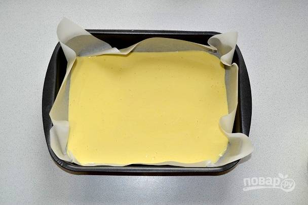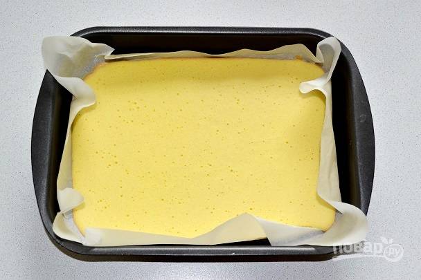 Вылейте его в форму поменьше противня и отправьте в духовку.