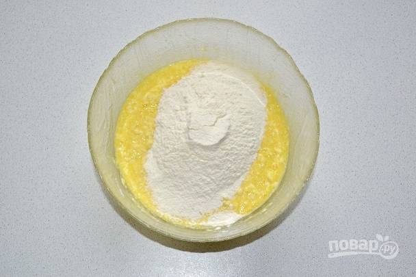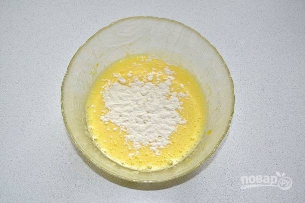 После в 3-4 приема всыпьте муку, продолжая взбивать.