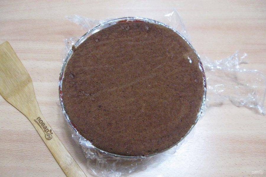 Поднимите края пленки и накройте торт. Отправьте в холод на час-полтора.