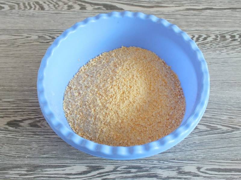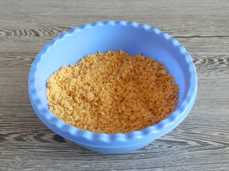 Печенье измельчите в блендере в мелкую крошку. Пересыпьте в чашу.