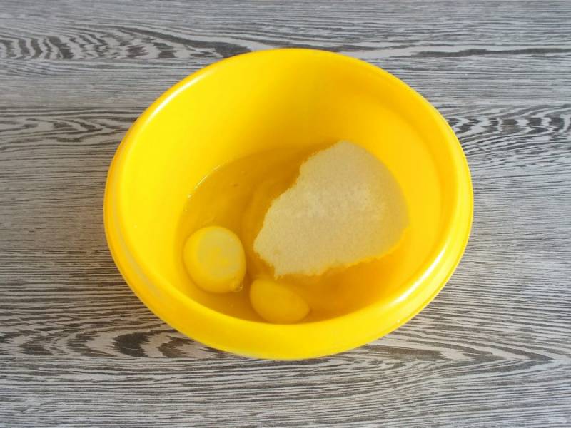 В отдельной чаше смешайте яйца, ванилин и сахар.