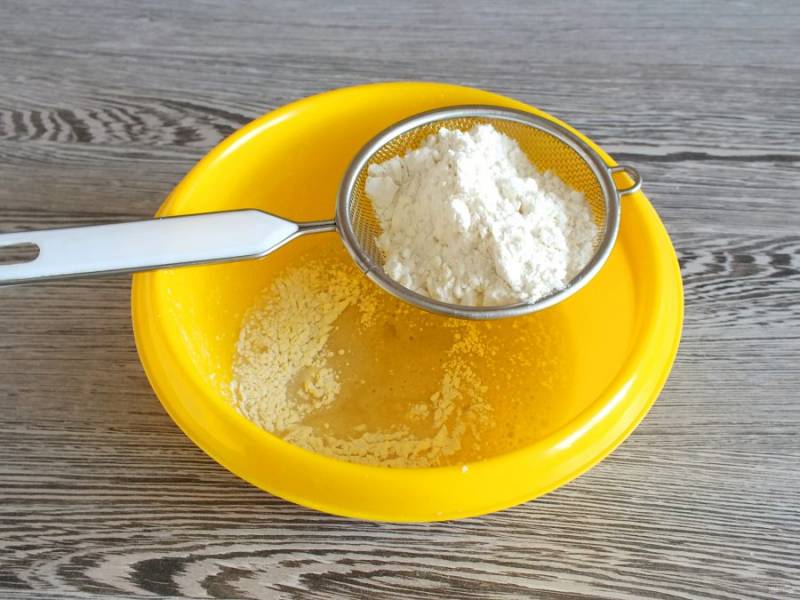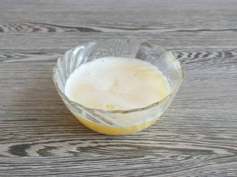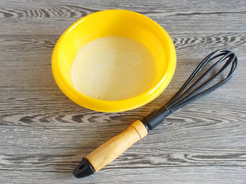 Добавьте 2 половника теплого молока и размешайте венчиком.