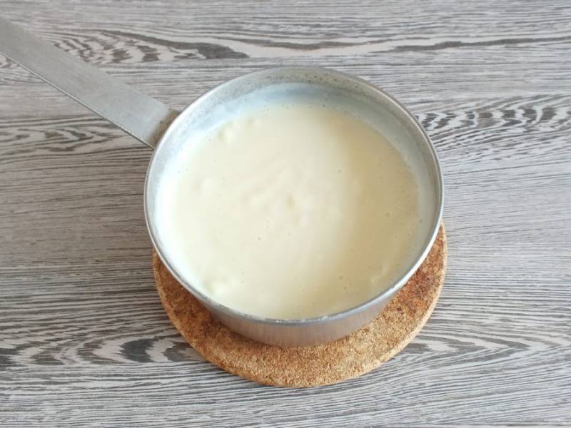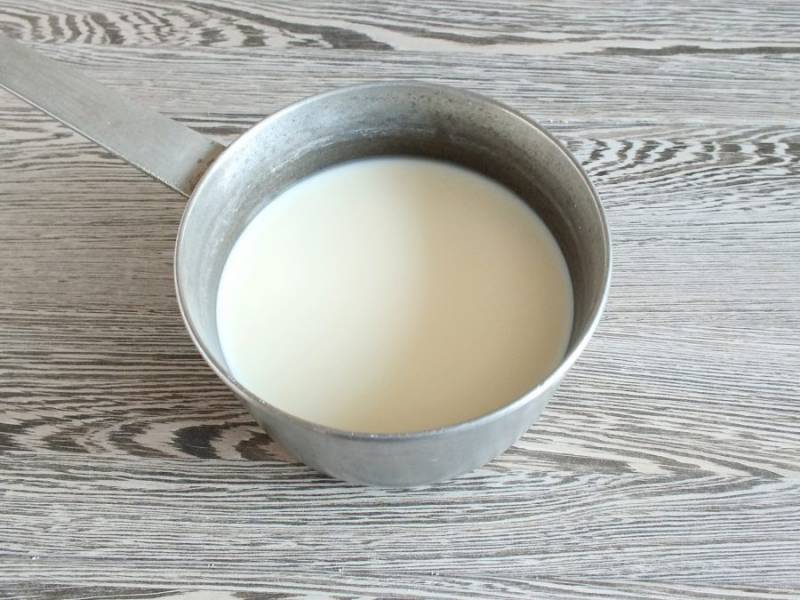 Сделайте крем. В сотейник налейте молоко, поставьте на огонь и подогрейте до температуры 36-40 градусов.