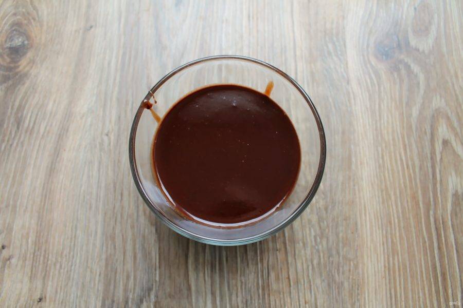 Для глазури смешайте мед, растительное масло, сливки, сахарную пудру и измельченный шоколад. Все доведите до однородности на водяной бане, перемешивая.