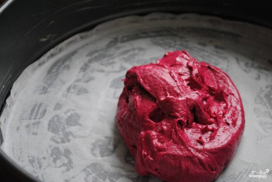 Форму для выпечки застелить пергаментом и уложить на него тесто.