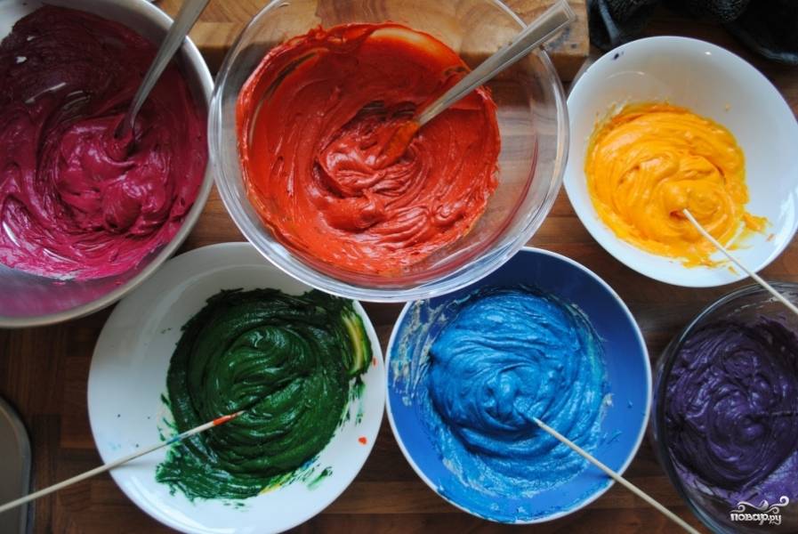 Видео рецепт "Торт Радуга с пищевыми красителями"
