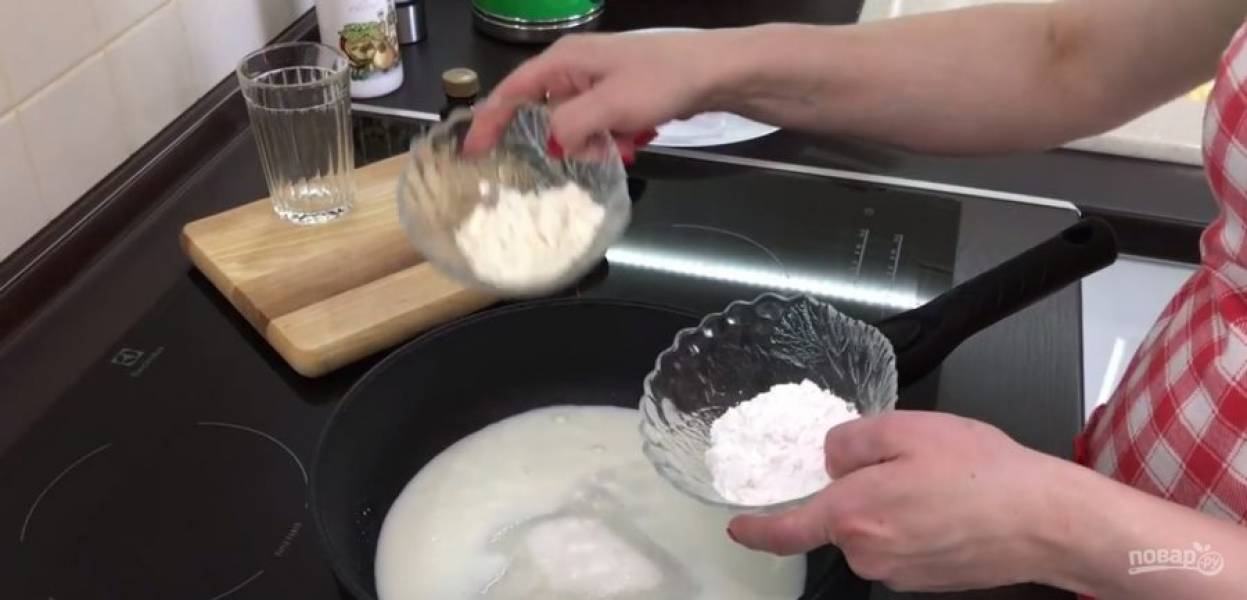 1. В сотейник вылейте молоко, добавьте сахар, крахмал и муку. Добавьте ваниль, перемешайте и варите на среднем огне до загустения. Переложите крем в миску и добавьте мягкое сливочное масло.