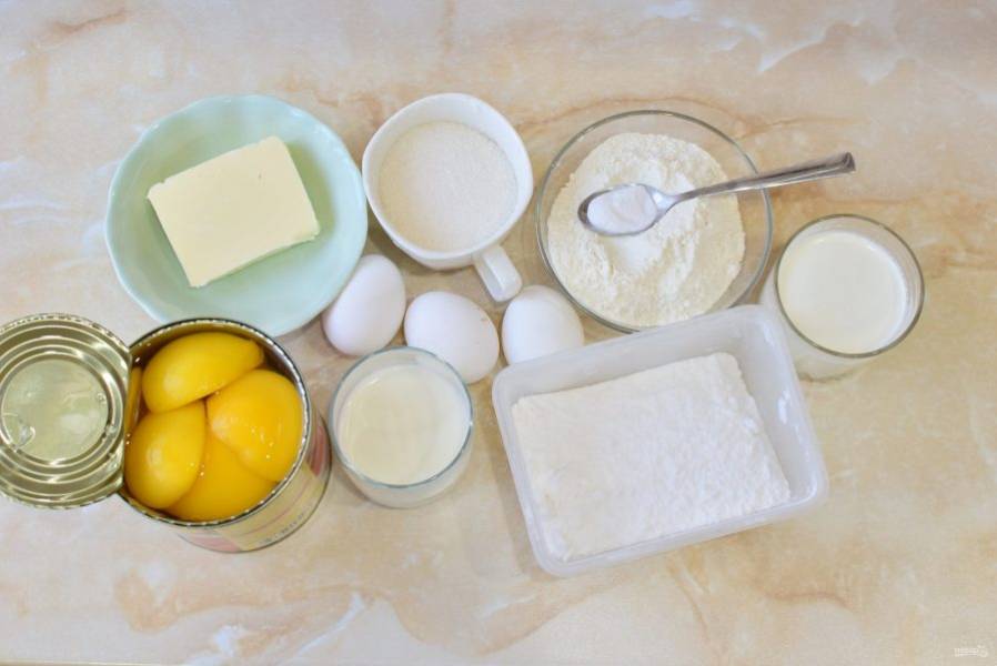 Торт с консервированными персиками и взбитыми сливками