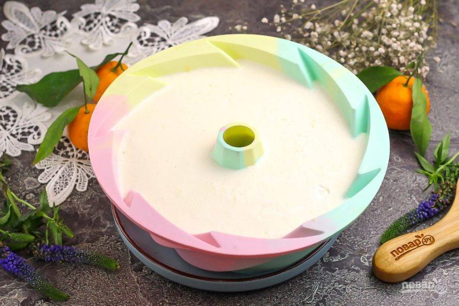 Выложите их в силиконовую форму на дно емкости. По желанию можно использовать и разъемную форму, если установить в нее пленку.