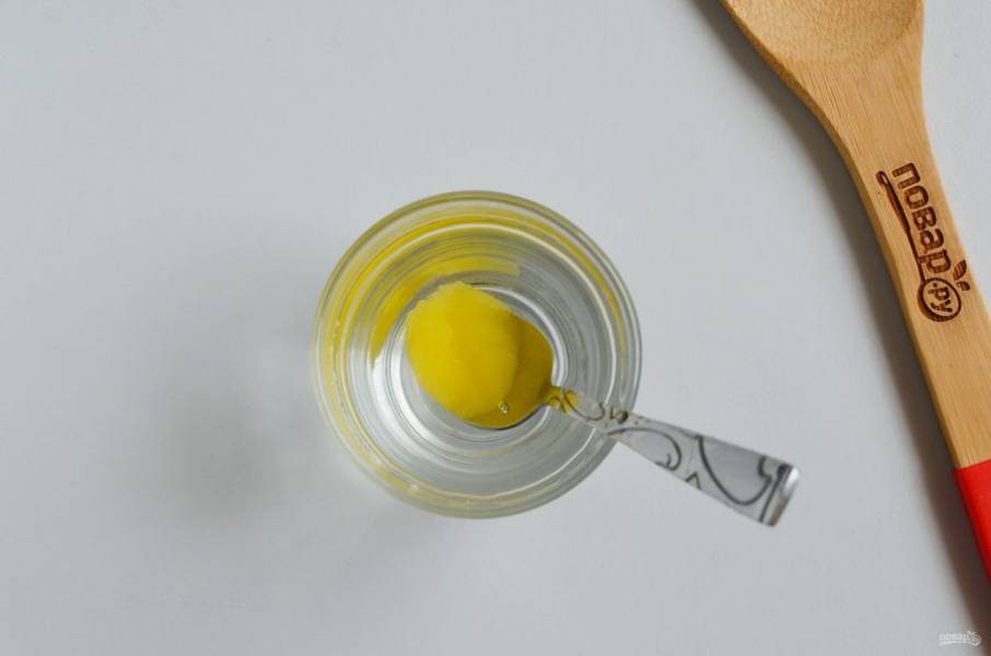 Теперь нужно приготовить пропитку для коржей. Разведите в 75 мл. холодной кипяченой воды 1 ч.л. меда. Готово.