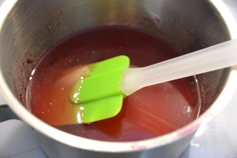Нагрейте до растворения желатина. Если желатин плохо разошелся, можно процедить через сито, охладите.