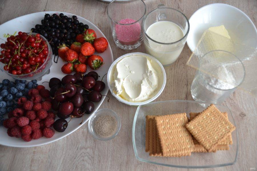 Торт с ягодами — отличный десерт для занятых хозяек. Ничего не надо выпекать, а получается очень вкусное и красивое лакомство. Рецепт простой, делюсь им с вами!