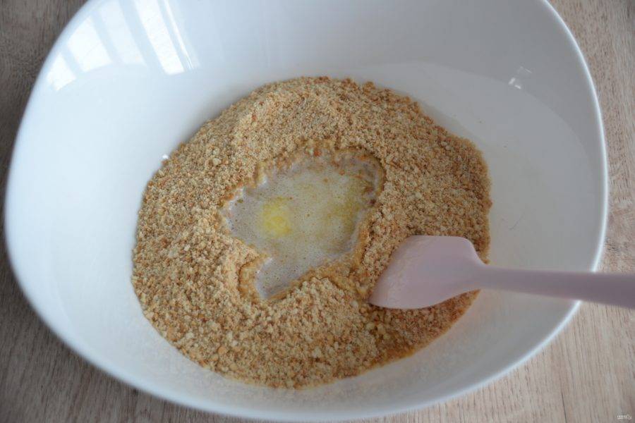Растопите сливочное масло, добавьте к печенью, вымешайте.