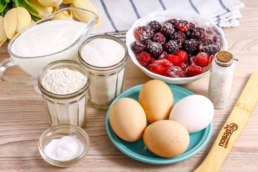 Подготовьте указанные ингредиенты. Сметану можно использовать любой жирности, ягоды — любые.