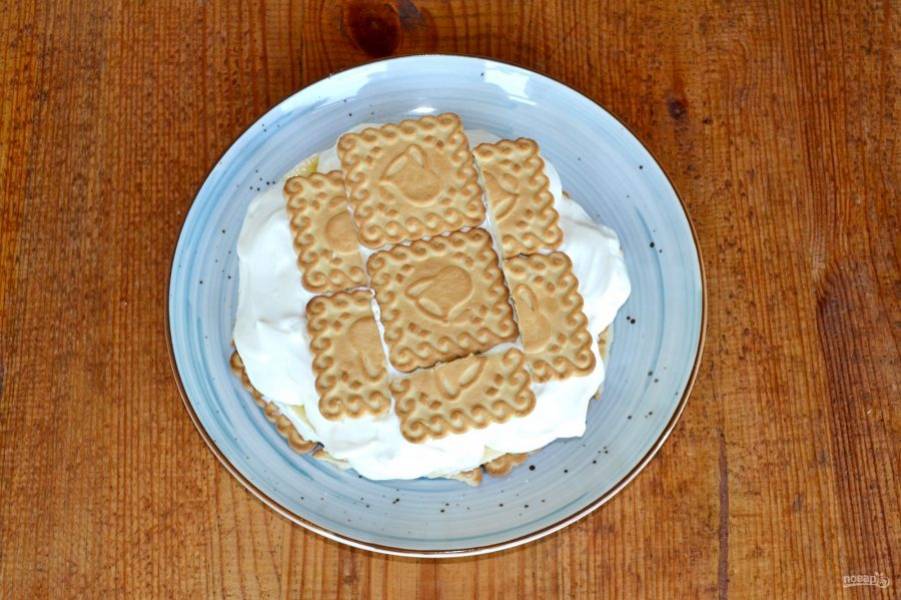На тарелку выложите печенье. Если печенье квадратное, можно вот таким образом подрезать его.