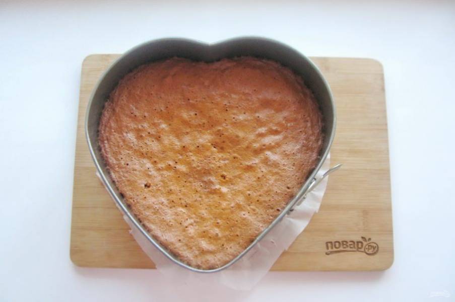 Выпекайте корж в духовке, разогретой до 175-180 градусов 35-40 минут. Готовность проверяйте сухой деревянной палочкой.