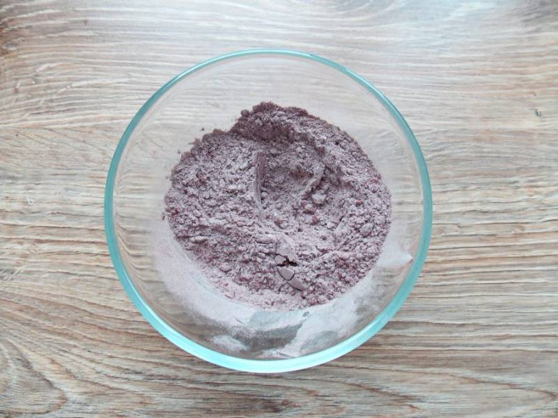 В миску насыпьте муку, добавьте половину какао, перемешайте.