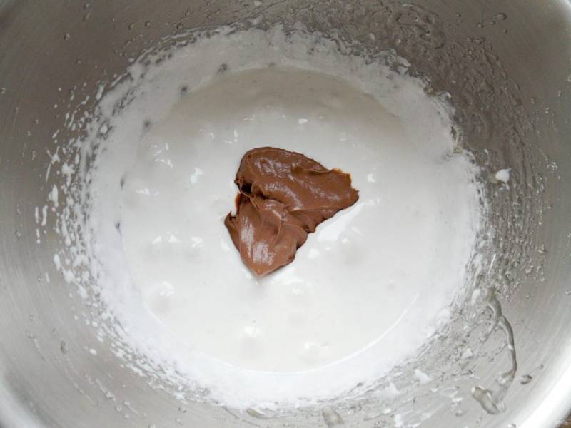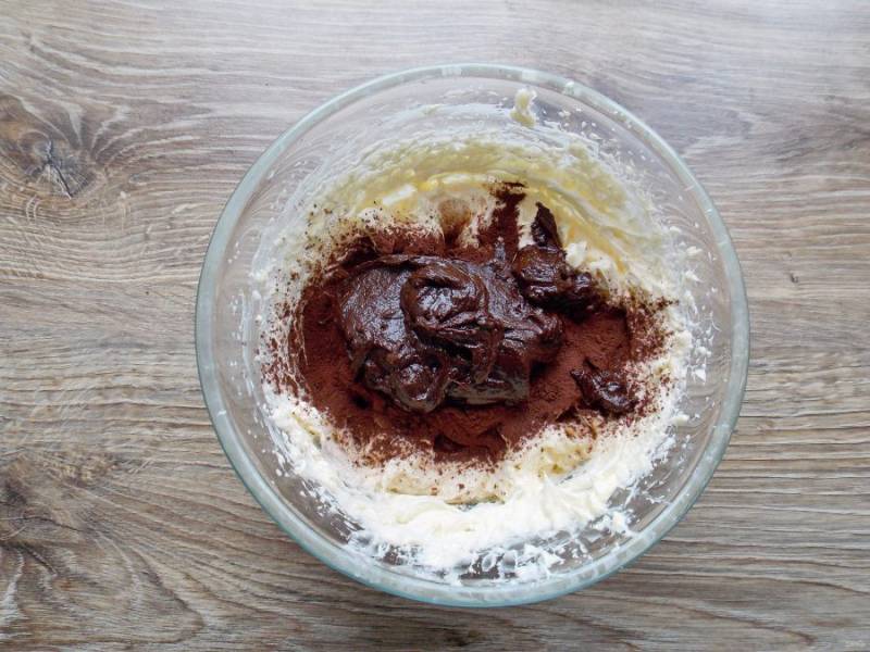 Взбивая добавьте шоколадный крем порциями. Взбивайте до однородной пышной массы.